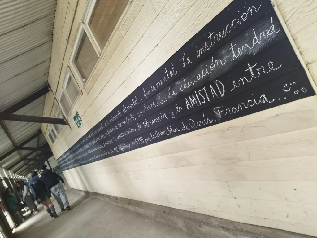 En cada una de ellas, se escribe con tiza blanca un artículo de la Declaración Universal de los Derechos Humanos.