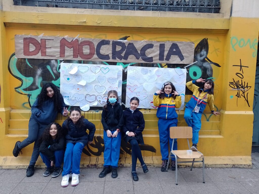 Se realizaron una serie de intervenciones durante tres meses de trabajo, dentro y fuera de la escuela, trabajando a través de los conceptos de Democracia y Derechos Humanos.